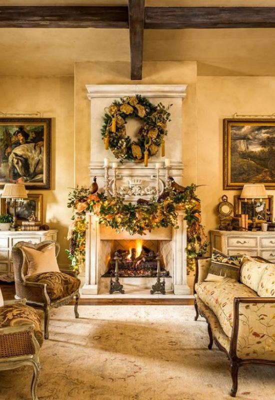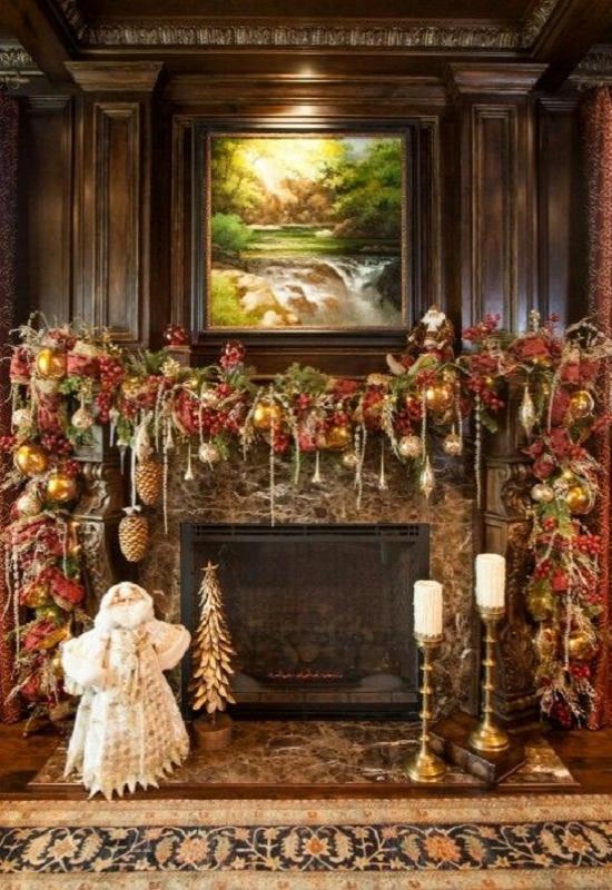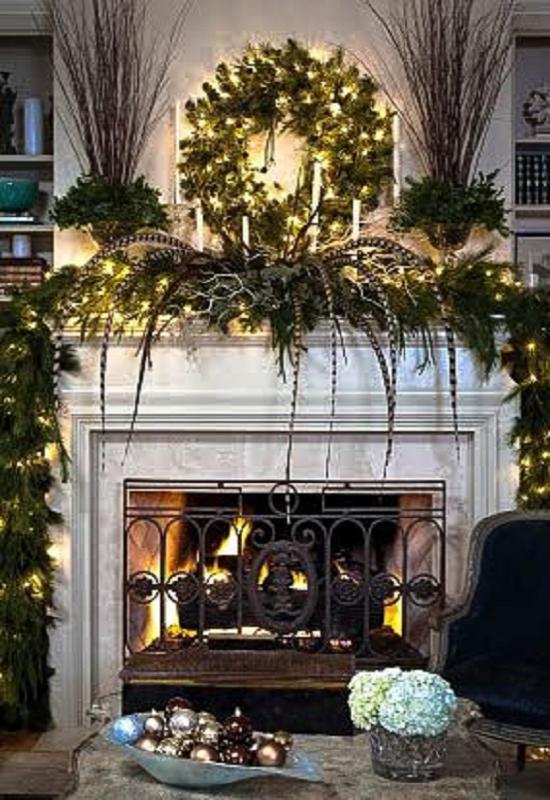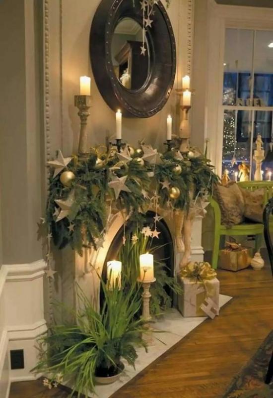 Камин сам по себе – это тепло, уют, дом. Обыграть его наличие под Новый год – обязательная задача. Красиво украшенный камин всегда смотрится незабываемо.